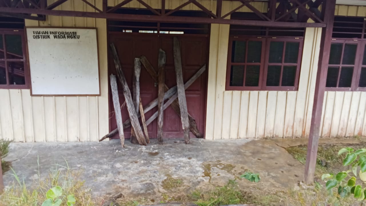 Wadangku, Liputanpapua.com – Masyarakat Distrik Wadangku melakukan pemalangan kantor distrik sebagai bentuk protes atas penunjukan SK PLT Kepala Distrik Baru di Wadangku.